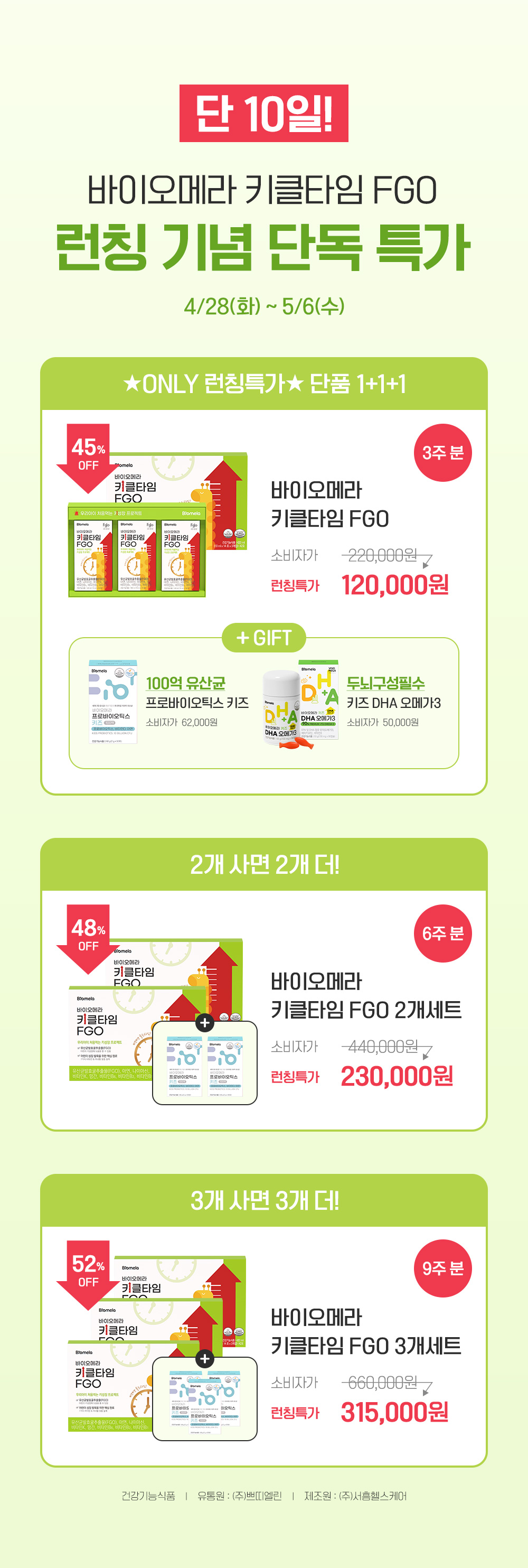 [특별할인]키클타임 FGO 3박스 (9주 분)(키성장/돌아기/첫돌아기)