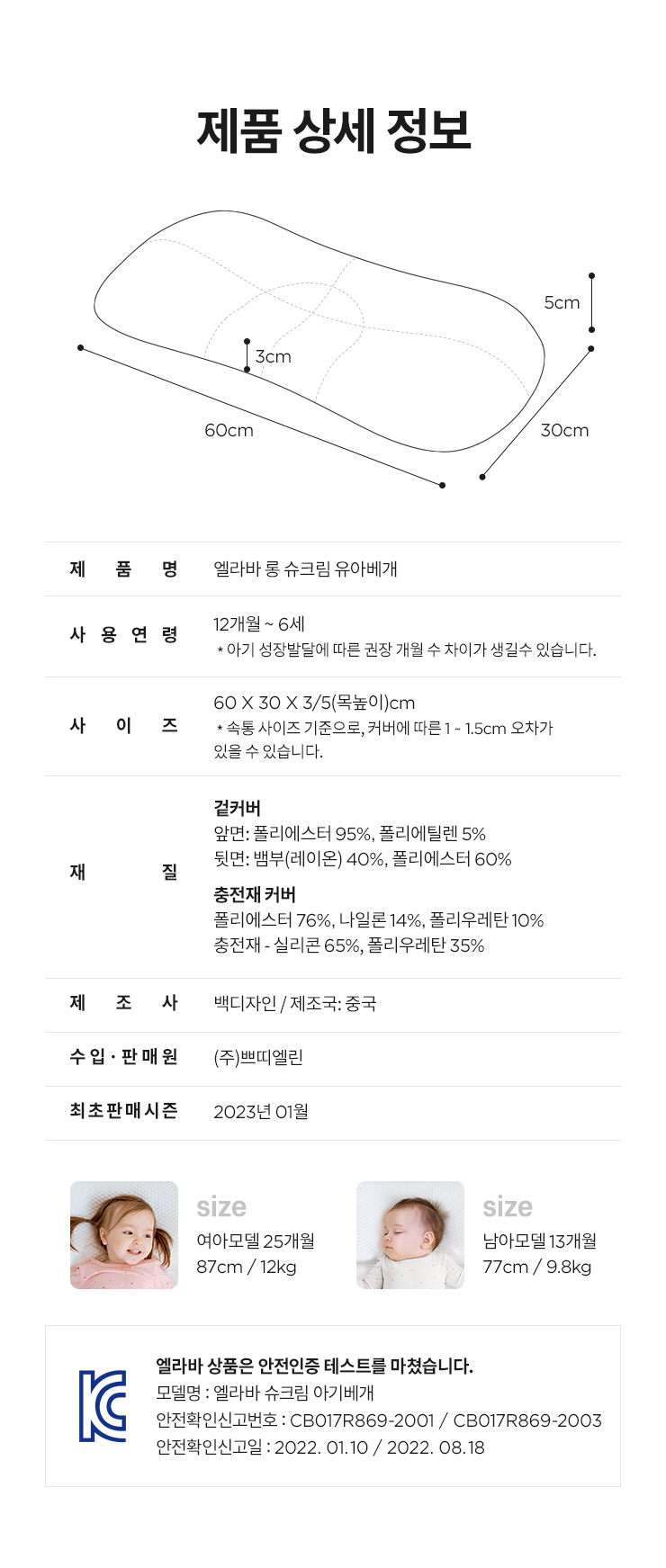 그래서 유아베게 검색하다가 엘라바 유아베게를 보게되서 의심없이 구매했습니다. 커버만 따로 한장더 추가구매 하고싶었는데 없는점이 약간 아쉽네요.