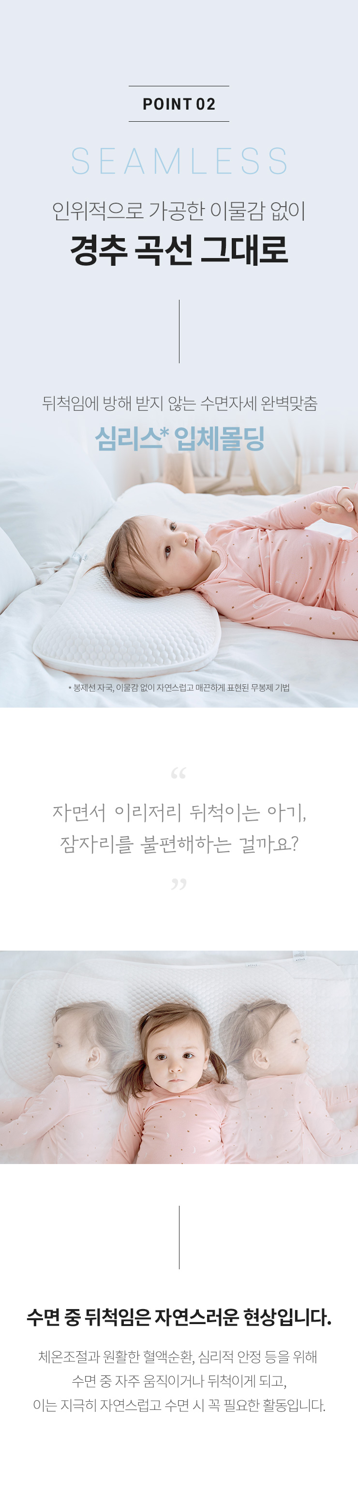 아가때부터 쓰던 베개가 이제 작아져서 롱으로 구입했는데 양옆으로 움직여도 길어서 좋아요~~