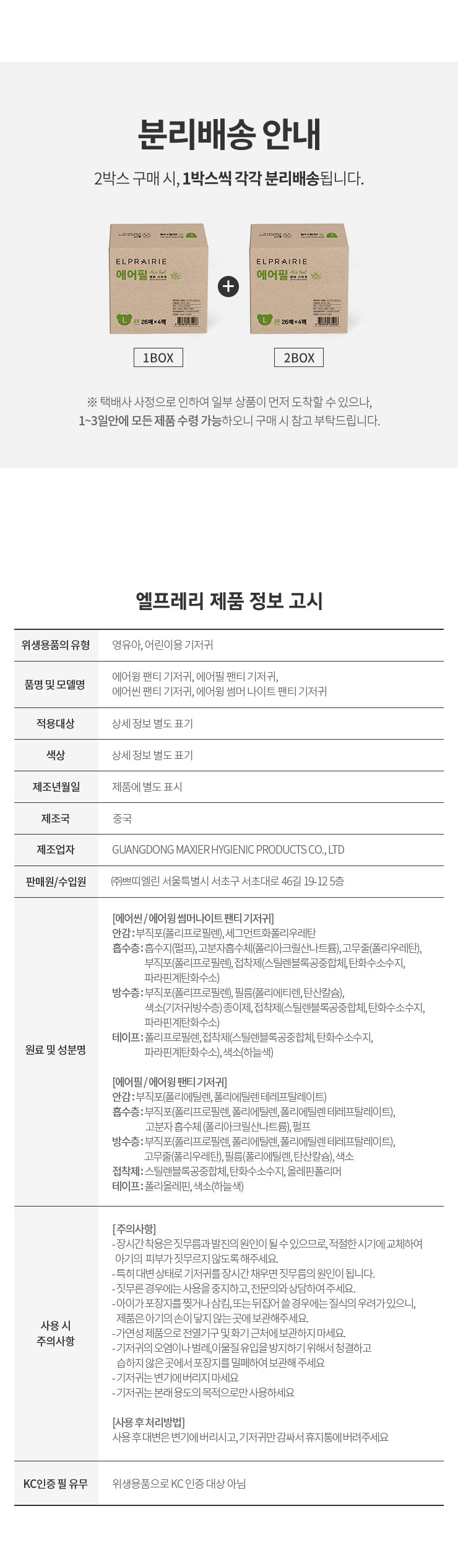 [★강력한 흡수력! 엘프레리 기저귀 무.료.배.송★]
