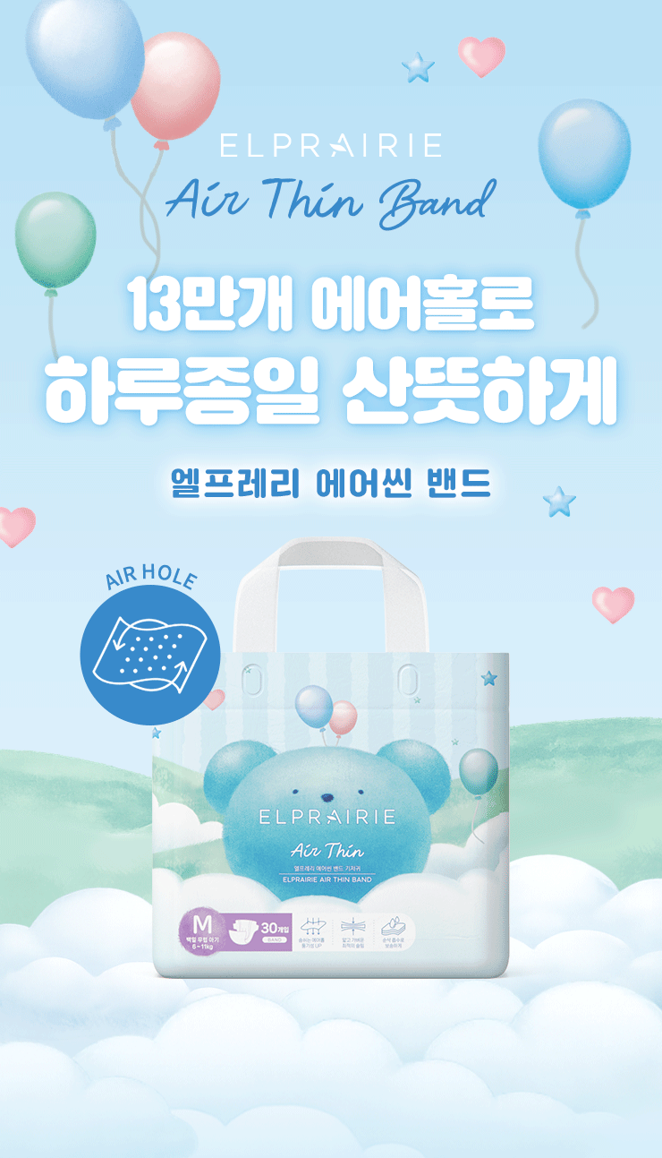 [특별할인]2026 에어씬 밴드 기저귀 4팩(120매)-M(중형)